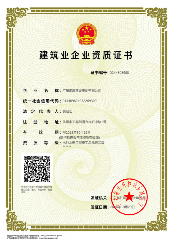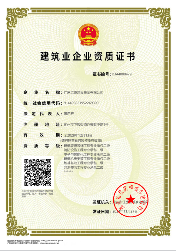 廣東諾廈建設(shè)集團(tuán)有限公司是諾廈集團(tuán)的核心企業(yè),具備國家房屋建筑工程施工總承包壹級(jí)、市政工程施工總承包壹級(jí)、港口與航道工程總承包、建筑裝修裝飾工程、消防設(shè)施工程、地基基礎(chǔ)工程、機(jī)電設(shè)備安裝工程、體育場地設(shè)施工程、建筑智能化工程、河湖整治工程、水利水電工程等資質(zhì)。......